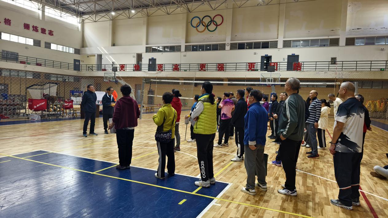 8:00,开幕式正式拉开帷幕。离退休工作处朱行书副处长主持活动,详细介绍了活动背景、参赛队伍及流程安排;张涛处长致辞,向到场的离退休教职工致以诚挚问候,强调本次交流赛旨在以球会友、增进情谊,丰富老年生活,预祝各队伍赛出水平、赛出风格;运动员代表汤来香老师与裁判员代表辛焰老师分别宣誓,承诺恪守比赛规则、秉持公正公平原则;随后,肖品龙书记宣布交流赛正式开幕,全体运动员在曾庆荣老师带领下进行热身后正式开赛。