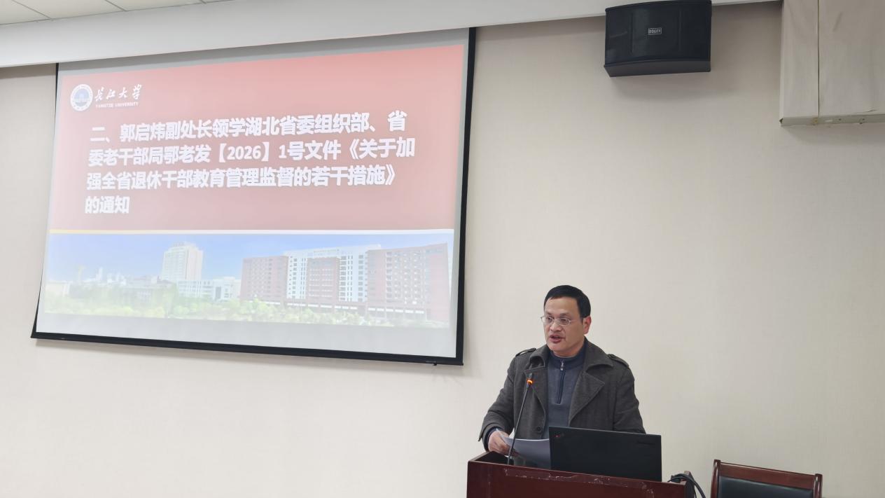 离退休工作处副处长朱行书主持开班仪式。活动管理科科长、老年大学办公室主任曹蓉全面总结回顾了老年大学2025 年的办学成效,并对2026年工作作出安排,一是持续加强老年大学规范化建设,抓实教学管理、师资建设与学员管理。二是以 “开学第一课”“纪律教育周” 为抓手,通过 “课前十分钟”“唱红歌” 等形式,打造廉政文化作品,把纪律教育融入日常教学全过程。三是紧扣中国共产党成立 105 周年、红军长征胜利90周年、长江大学建校 90 周年三大主题,开展红色文艺创作、红歌传唱等特色活动。四是组建银龄志愿服务队,开展结对帮扶特困老人和结对关心关爱下一代等活动,发挥学员优势作用助力文明校园建设。