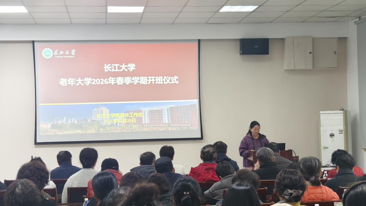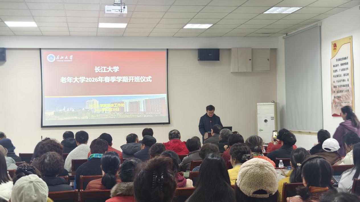 春风送暖,万象更新。为规范和加强老年大学建设,3 月 20 日,长江大学老年大学2026 年春季学期开班仪式暨开学第一课在东校区团委二楼会议室隆重举行。离退休工作处领导、各校区办主任、春季班任课教师、各班班长及学员代表90余人参会。