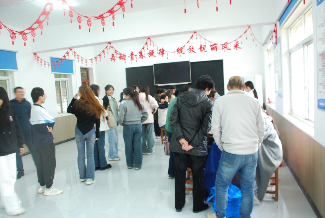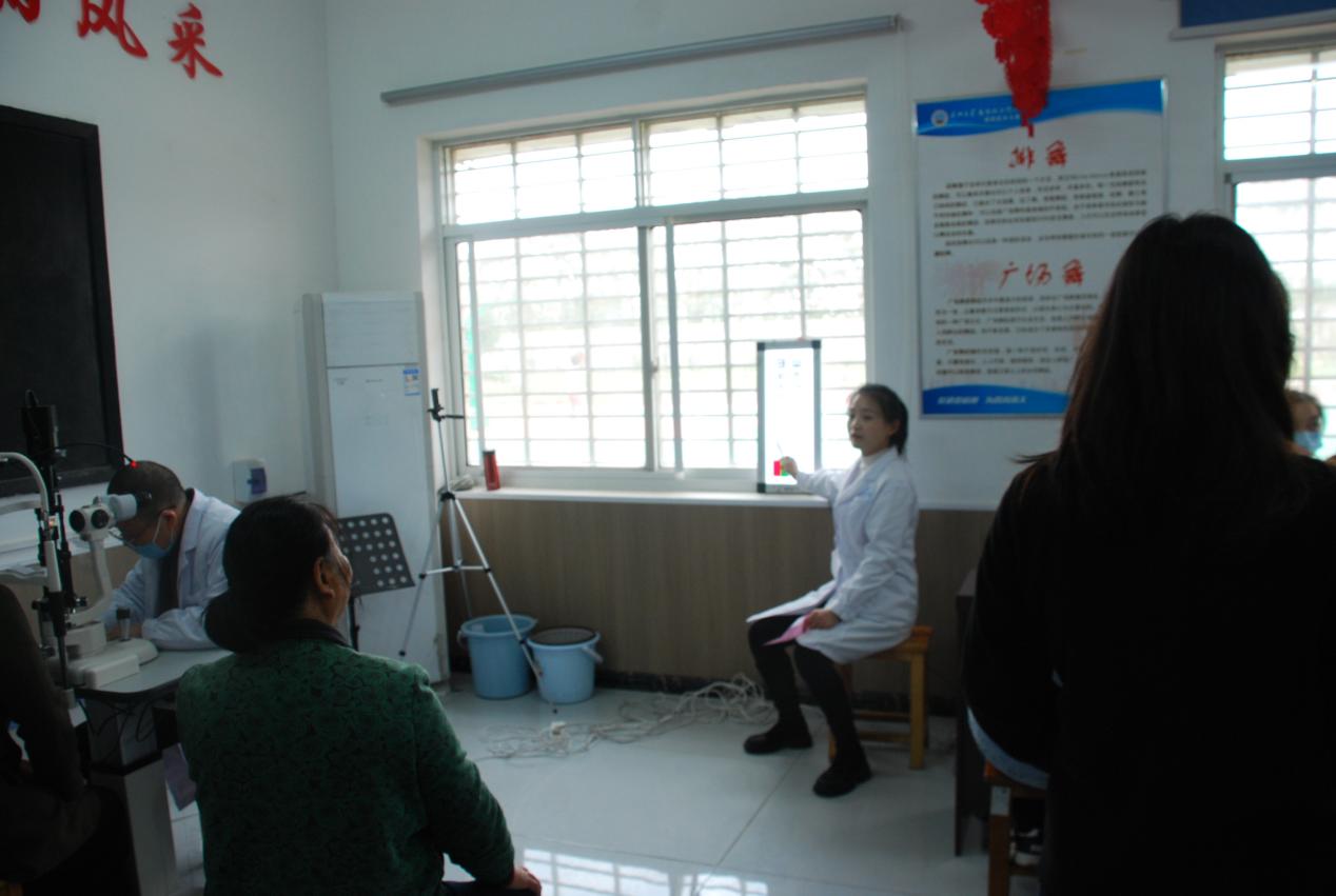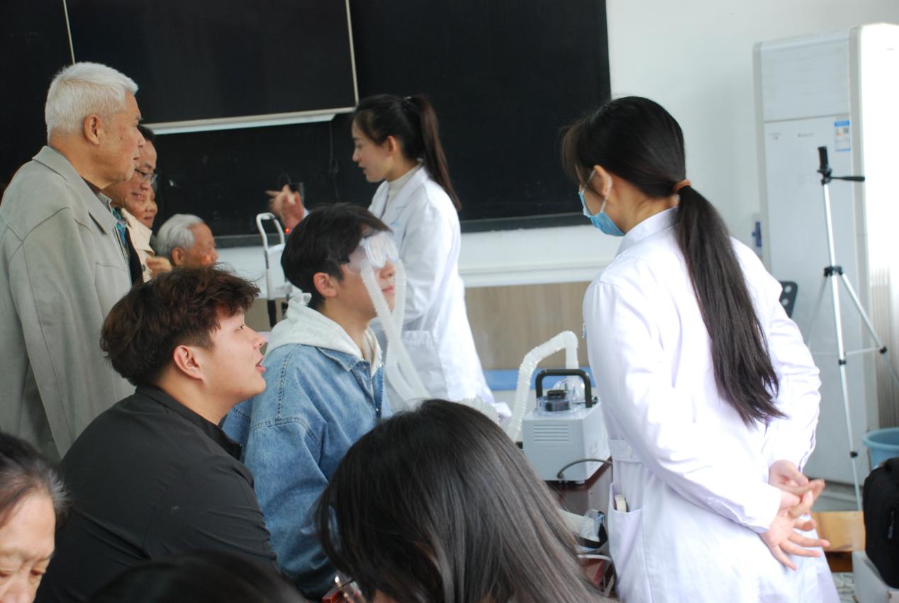 活动的最后一部分为义诊服务环节在舞蹈室展开。荆州华夏眼科医院的医护团队在现场设置了视力检查区、裂隙灯检查区干眼雾化体验区、近视度检查区,为到场的退休教职工及和大学生提供“一站式”眼部检查服务。医护人员耐心引导大家排队登记,逐一进行裸眼视力检测、眼压测量、眼前节健康评估等基础检查,针对干眼症患者提供了专业的雾化熏蒸体验,缓解眼部干涩、疲劳等不适。并向到会人员发放眼健康科普手册。大家有序参与,反响积极。